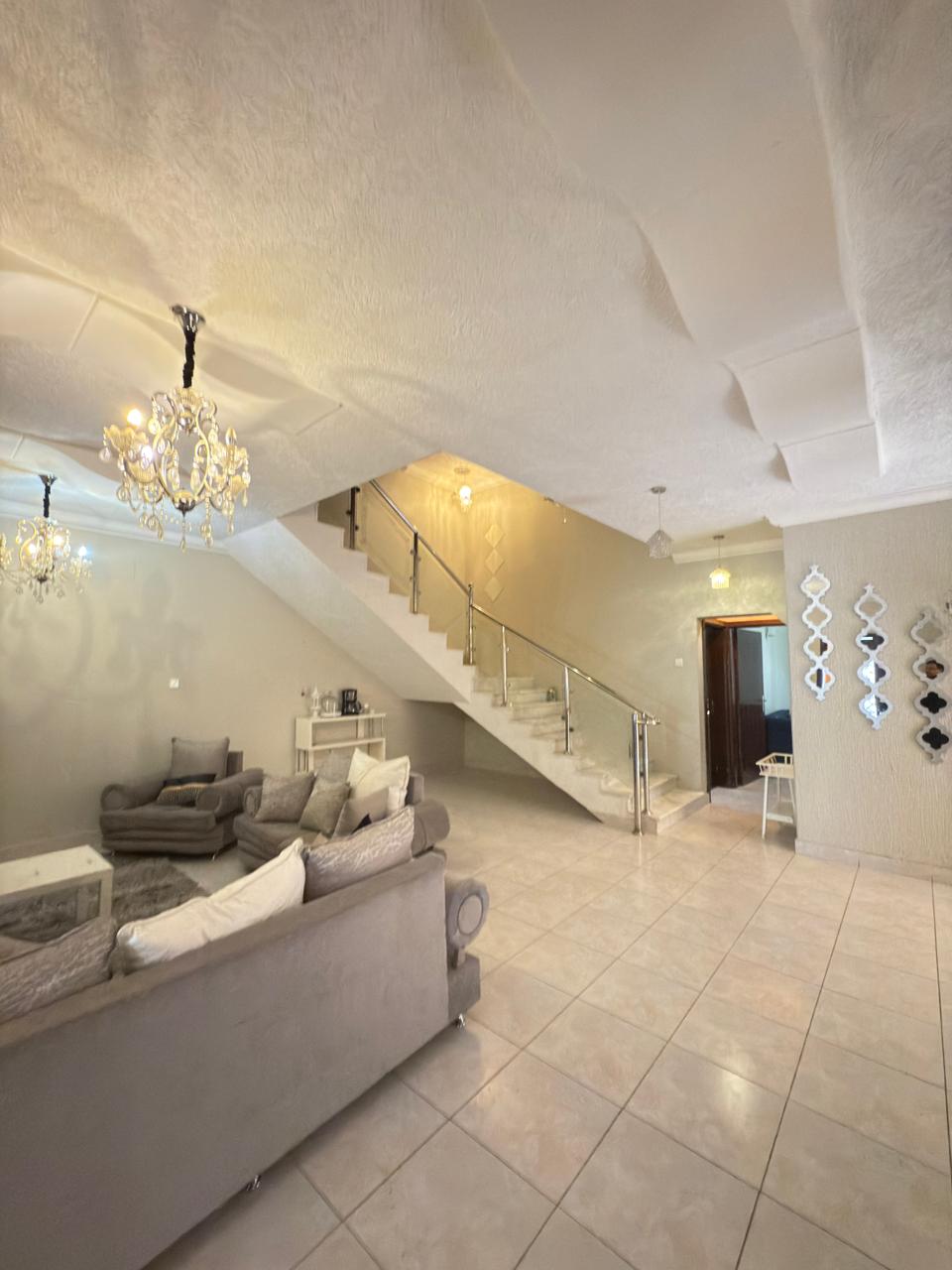 وفوق غرفه ماستر ودورة مياه وغرفة ملابس وغرفتين ودورة مياه واحده وغرفه صغيره