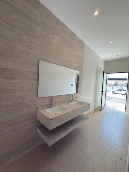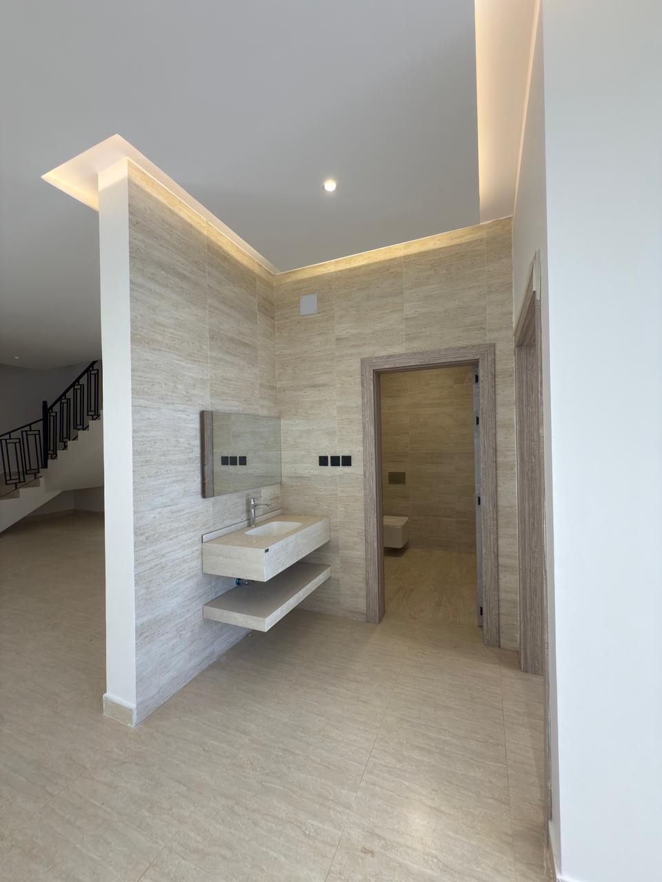 🔸 نوافذ مدبوله وبلوك بركاني و كرسي افرنجي جميعها معلق و دش مطري وجودة عاليه بالبناء