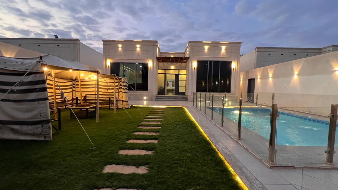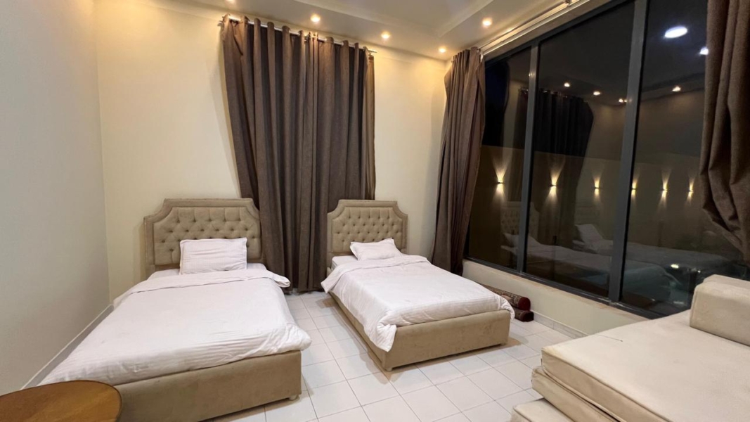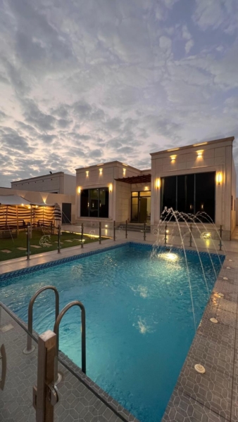 غرفتين نوم + صالة + مسطحات + مطبخ + مسبح