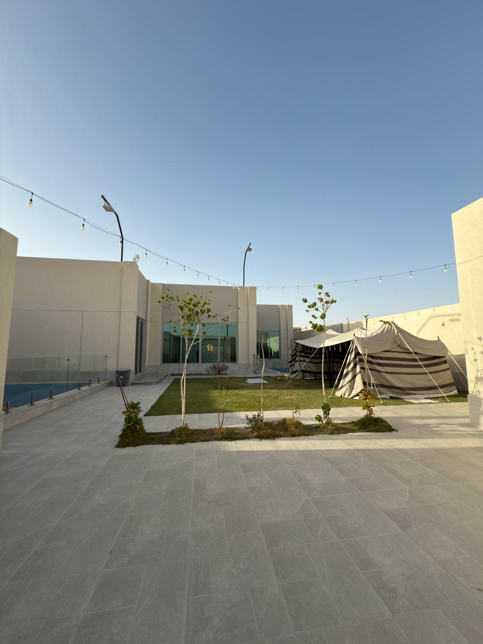 مسطحات خضراء – العاب مائية – مسبح – صاله كبيره – دورة مياه – خيمة – 2 غرفة ماستر