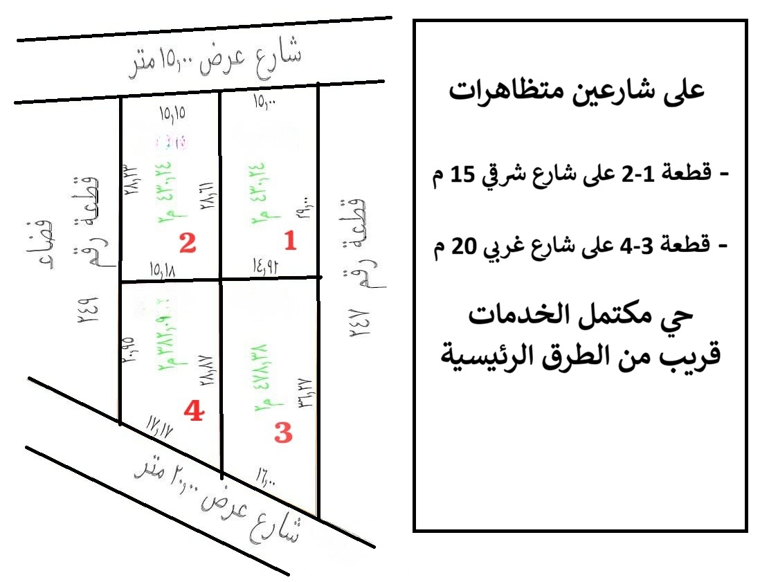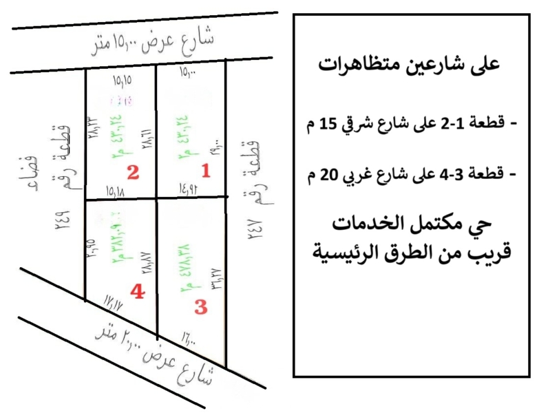 القطعتين 3-4 على شارع غربي 20 م