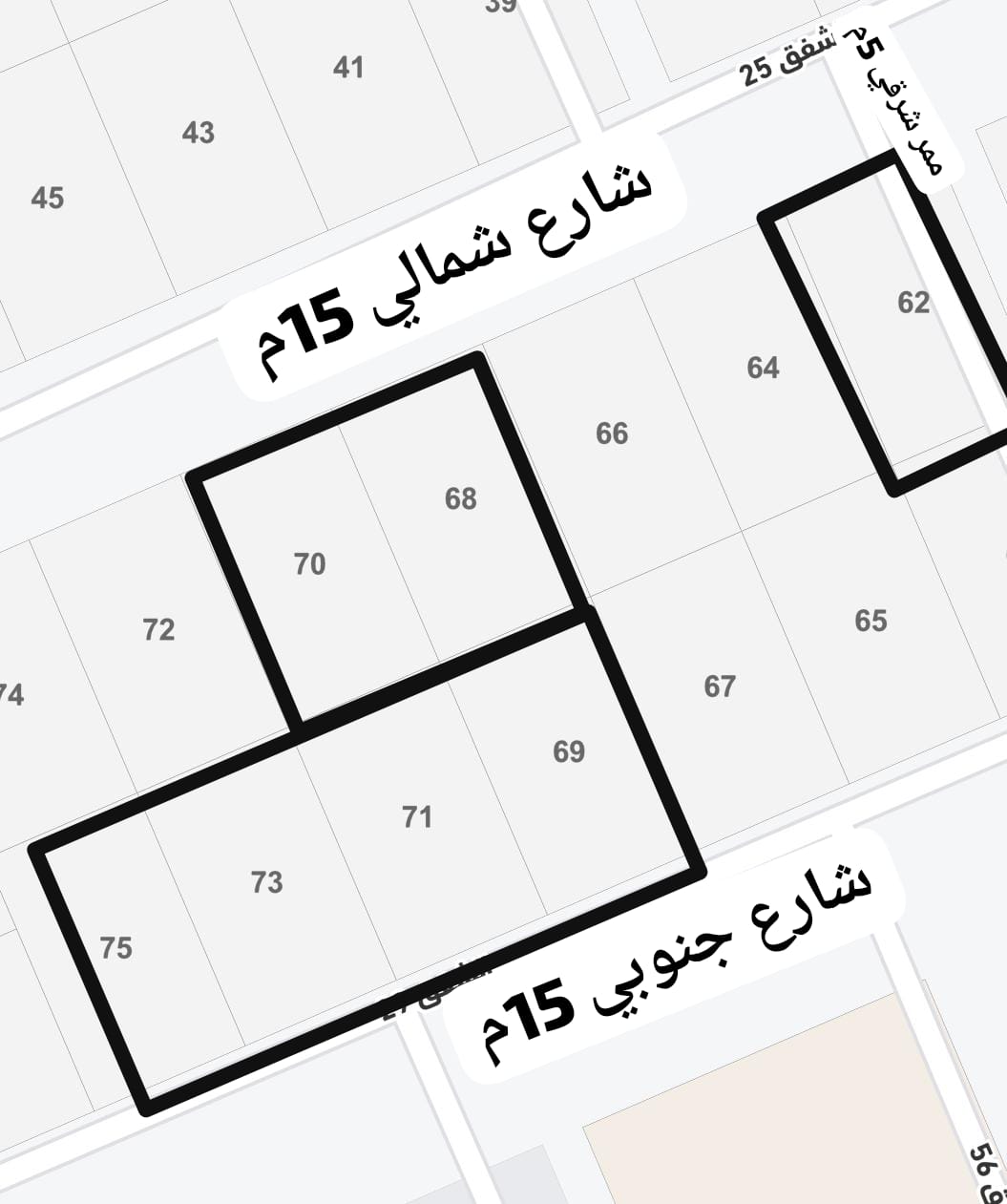 القطع 69-71- 73- 75 شارع جنوبي 15 م